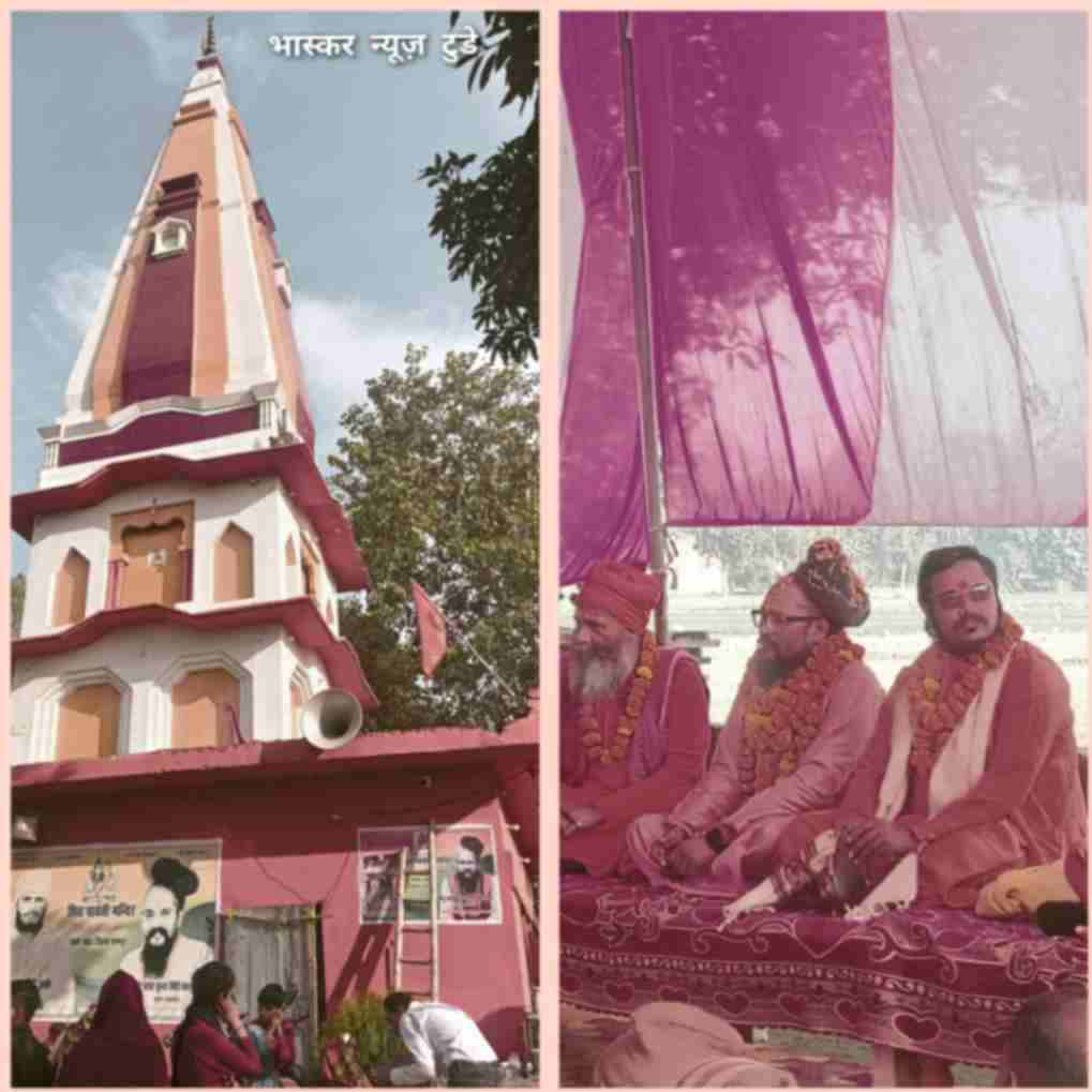 *कुम्हरियां कलां शिव मन्दिर में महंत सोमानन्द भारती संतो के बीच अपने भक्तों को प्रवचन देते हुये*