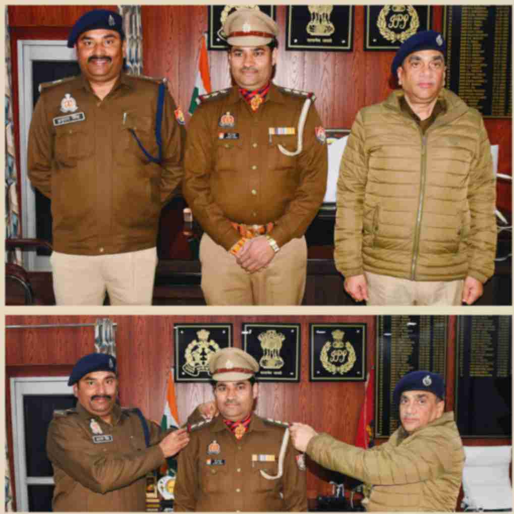 *पुलिस अधीक्षक, रामपुर एवं अपर पुलिस अधीक्षक, रामपुर द्वारा कंधों पर सितारें लगाकर दी गई बधाई ।*