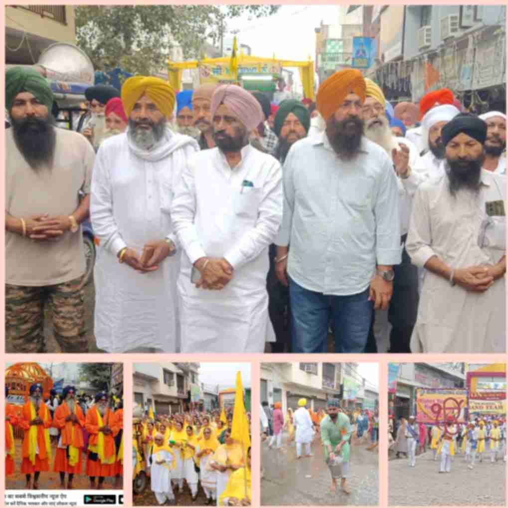 मंगलवार को नगर के माठखेड़ा रोड स्थित गुरुद्वारा श्री गुरु सिंह सभा से वाहे गुरु के जयकारों के साथ विशाल नगर कीर्तन की शुरूआत हुई।इसमें नगरीय तथा आस-पास के ग्रामीण क्षेत्रों से आए हजारों सिख महिला-पुरुषों व बच्चों ने शामिल होकर श्री गुरु ग्रंथ साहिब की पालकी के दर्शन कर अरदास की तथा प्रसाद ग्रहण किया।श्री गुरु ग्रंथ साहिब की पालकी के आगे धार्मिक वेशभूषा धारण कर पंच निशानची व प्यारे चल रहे थे।उनसे भी आगे पालकी के लिए बड़ी संख्या में श्रद्वालु झाड़ू लगाकर साफ-सफाई करते हुए चल रहे थे।कुछ श्रद्धालु पुष्प बिखेरकर गुरु की महान सवारी के लिए मार्ग बनाते हुए चल रहे थे।पालकी के पीछे-पीछे बड़ी संख्या में महिलाएं सबद-कीर्तन करती चल रही थी।पुरूष भी जयकारे लगाते हुए शामिल थे। उत्साही युवकों ने आतिशबाजी छोड़कर गुरु की सवारी का अभिनंदन किया।नगर कीर्तन में शामिल गतका पार्टी,बैण्ड, नगाड़ा,झांकियां आदि लोगों को मोह रही थीं।क्षेत्र के गायत्री गर्ल्स इंटरनेशनल स्कूल, मिल्टन एजुकेशनल अकेडमी,न्यू ऐज पब्लिक स्कूल,श्री गुरुनानक कन्या इण्टर कालेज सहित आदि शिक्षण संस्थानों के बच्चे भी बड़ी संख्या में शामिल हुए।नगर कीर्तन में इनके बैण्ड,बनाए गए धार्मिक माडल,नृत्य आदि विशेष आकर्षण का केन्द्र रहे।नगर में जगह-जगह स्वागत द्वार बनाए गए थे तथा श्रद्धालु सबील और लंगर के स्टाल लगाकर सेवा कर रहे थे।इसमें कथावाचक तथा विविध जत्थों और बच्चों ने भी सुंदर सबद-कीर्तन कर संगत को निहाल किया।नगर के प्रमुख मार्गों का भ्रमण-कर नगर कीर्तन शाम को गुरुद्वारा परिसर में ही आकर सम्पन्न हो गया।कीर्तन की व्यवस्था में दशमेश सेवक दल, पंथ सेवक दल,स्त्री सत्संग सभा, सिख क्लब आदि ने सहयोग दिया।इस अवसर पर राज्यमंत्री बलदेव सिंह औलख, ब्लॉक प्रमुख कुलवंत सिंह औलख, पालिकाध्यक्ष चित्रक मित्तल, गुरुद्वारा कमेटी के प्रधान तीरथ सिंह, हरजिंदर सिंह,तारा सिंह चंदी, डा.कुलविन्दर सिंह बाजवा,मान सिंह,बलवीर सिंह चौहान,अर्जुन सिंह गिल,जागीर सिंह,अमरीक सिंह चौहान,परमजीत कौर पोला,मंदीप कौर,परमजीत कौर, गुरमीत सिंह,सर्वजीत सिंह, संदीप सिंह पुरी,बलजिंदर सिंह आदि शामिल रहे।उधर,सुरक्षा की दृष्टि को देखते हुए प्रभारी निरीक्षक बलवान सिंह,कस्बा चौकी प्रभारी ललित कुमार पुलिस बल के साथ मौजूद रहे।